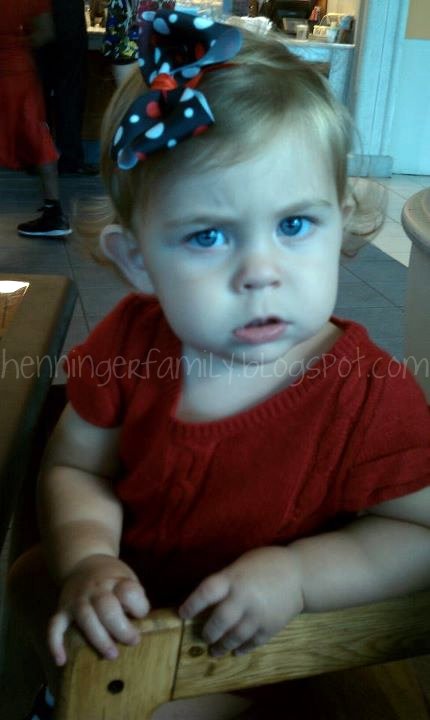 Heidi and I went to check out some of the sales for Columbus Day! Such a great trooper this little tike is! We went into Gymboree and there was a great little section for kids to watch T.V. Heidi loved going to the chairs to watch T.V. and then another little girl came and sat next to her. I just love the way that Heidi interacts with other children now. It is absolutely the sweetest thing ever! Sometimes I just stop and stare at her and the way that she interacts with other kids. After our shopping spree we dined outside enjoying the nice weather we are having!